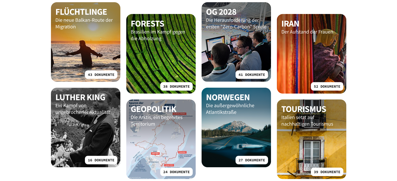 • Zugang zu einem Archivbestand mit jahrzehntelangen Reportagen, Fotos und Videos
