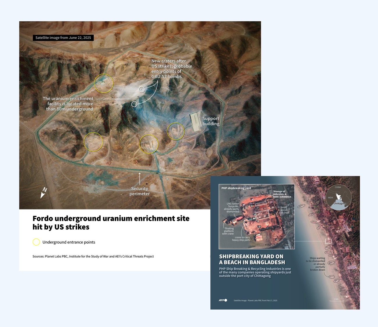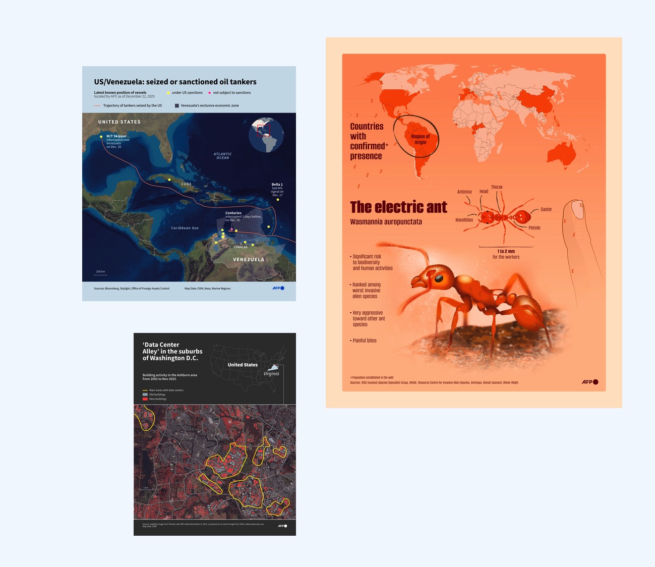 The Graphics department works directly with AFP’s editorial departments to provide the top news stories in illustrated format.