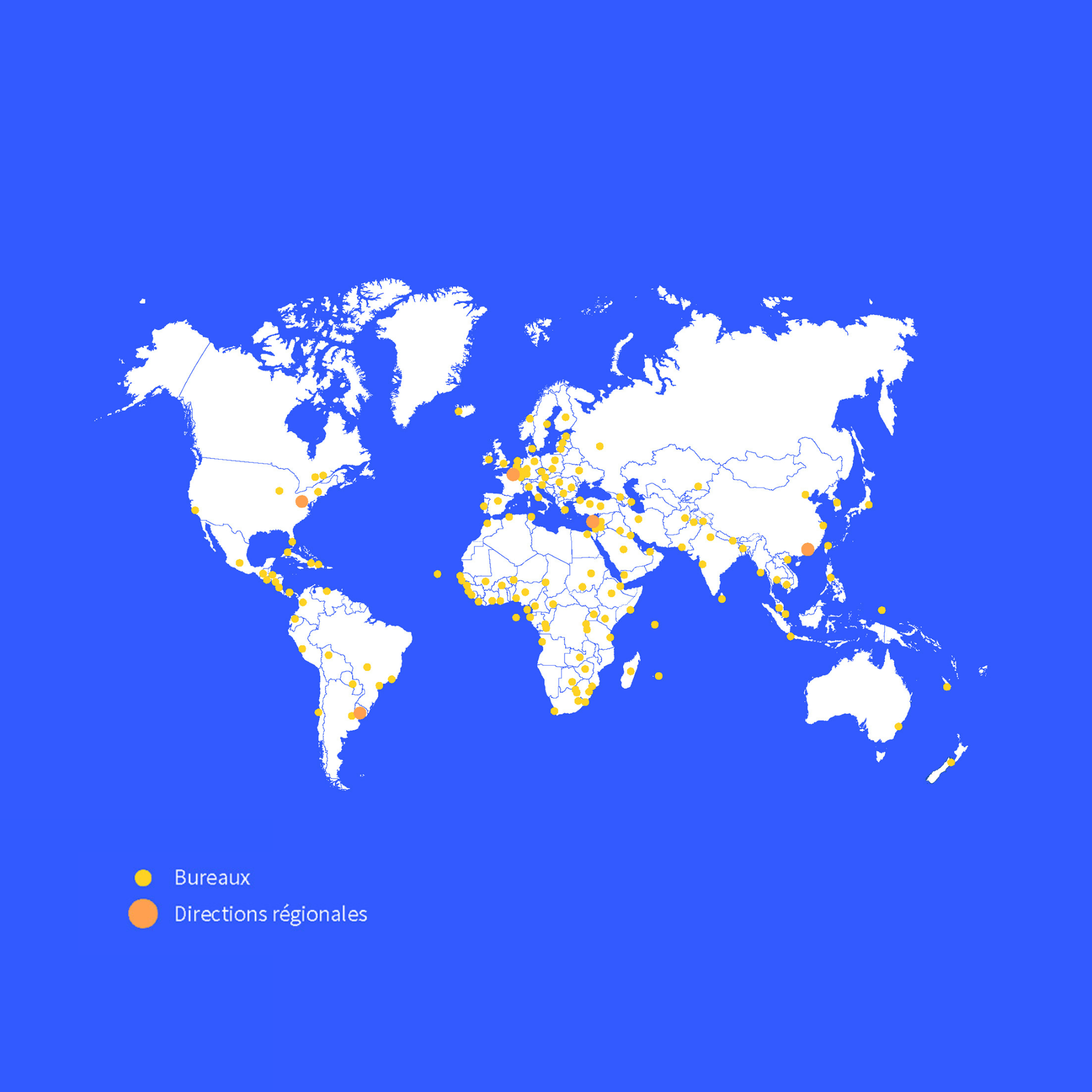 • États-Unis : Houston, Los Angeles, Miami, New York, San Francisco, Washington
