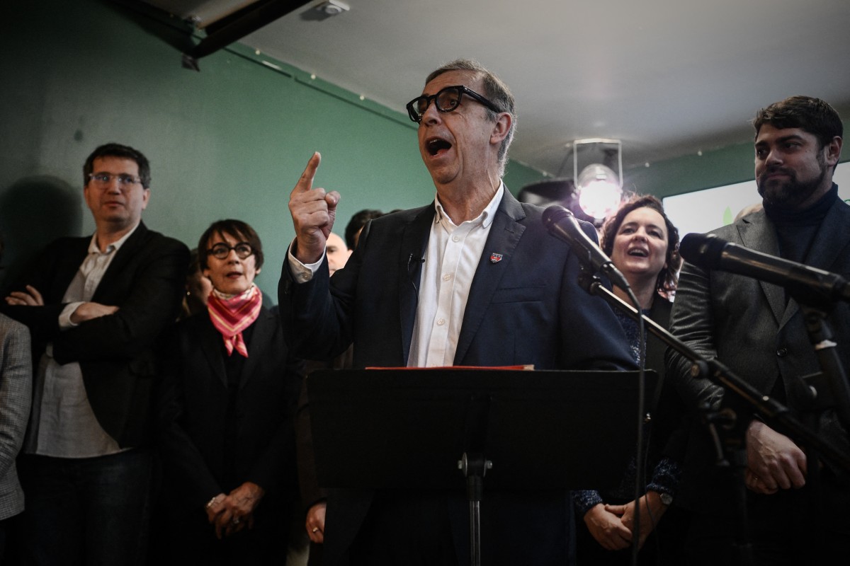 (3) Le maire écologiste de Bordeaux, Pierre Hurmic (C), lors d’une conférence de presse lançant sa campagne pour les élections municipales de 2026, à Bordeaux, le 9 janvier 2026. Élu à la tête de la ville depuis 2020, Pierre Hurmic brigue un nouveau mandat, tandis qu’un candidat du parti Renaissance conduit une alliance de centre droit cherchant à détrôner le maire écologiste. © Frederick Florin / AFP