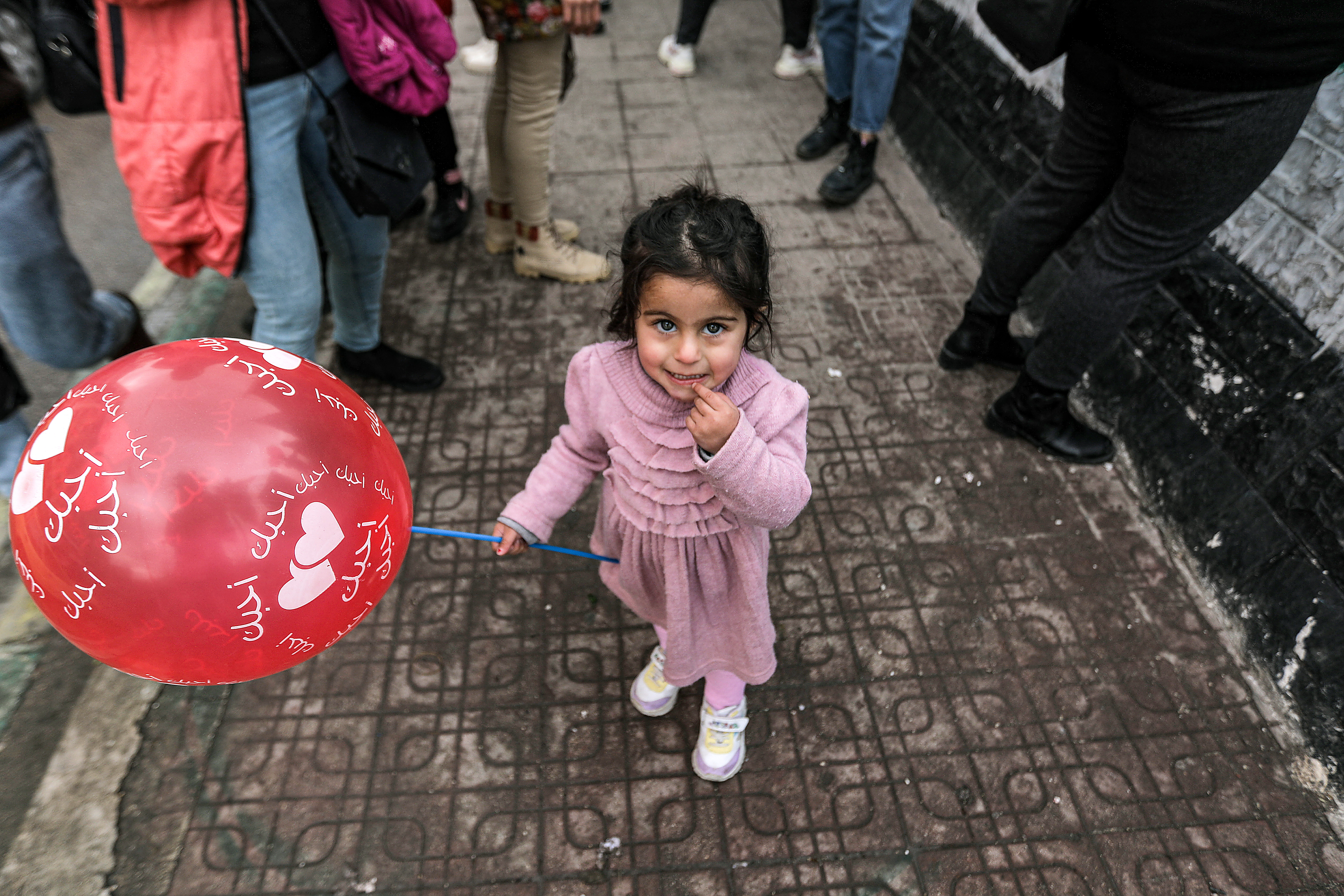 Une fillette tient un ballon lors d'un rassemblement sur la place Karama, à Soueida, le 29 décembre 2024. © Bakr Alkasem / AFP