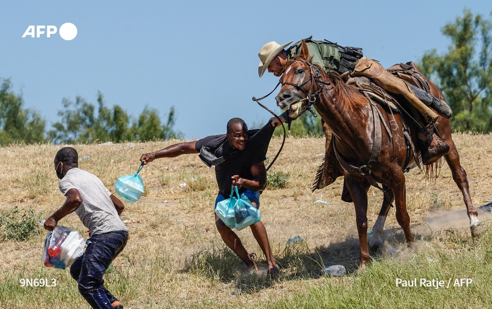 Paul Ratje, photographe américain basé à El Paso, aux Etats-Unis, remporte le 3e prix dans la catégorie « Single News » avec son cliché devenu viral, où l’on voit des garde-frontières américains essayant d’arrêter des migrants haïtiens à Del Rio, au Texas.