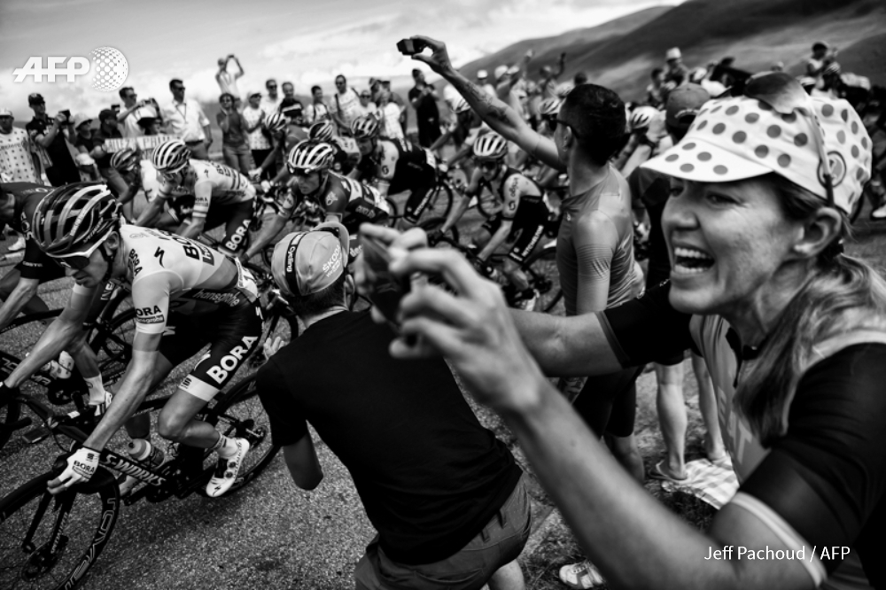 Jeff Pachoud, photographe du bureau AFP de Lyon a remporté un prix d’excellence dans la catégorie « Action sportive » pour sa photo de cyclistes encouragés par des supporters lors de la 12e étape de la 106e édition du Tour de France.