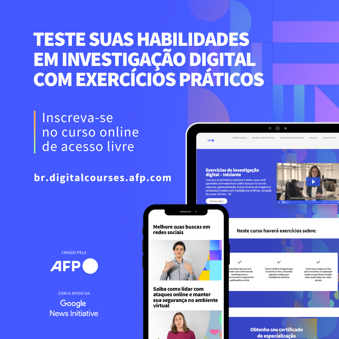 A equipe também criou uma série de cursos online destinados a jornalistas e estudantes de jornalismo, disponíveis sem custo em br.digitalcourses.afp.com.